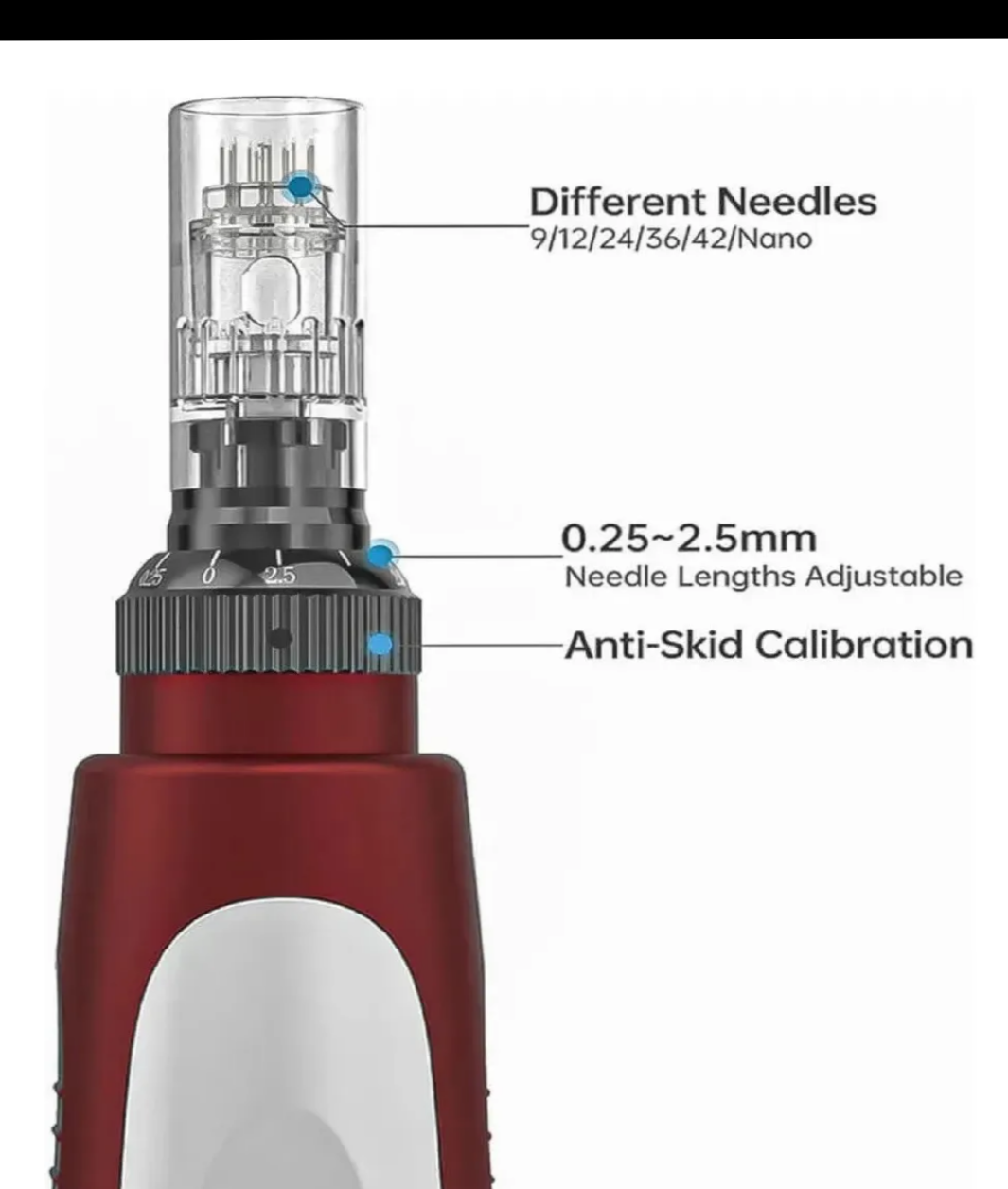 Longitud de Agujas Ajustable: Desde 0,25 mm hasta 2,5 mm para tratar diferentes áreas de la piel.