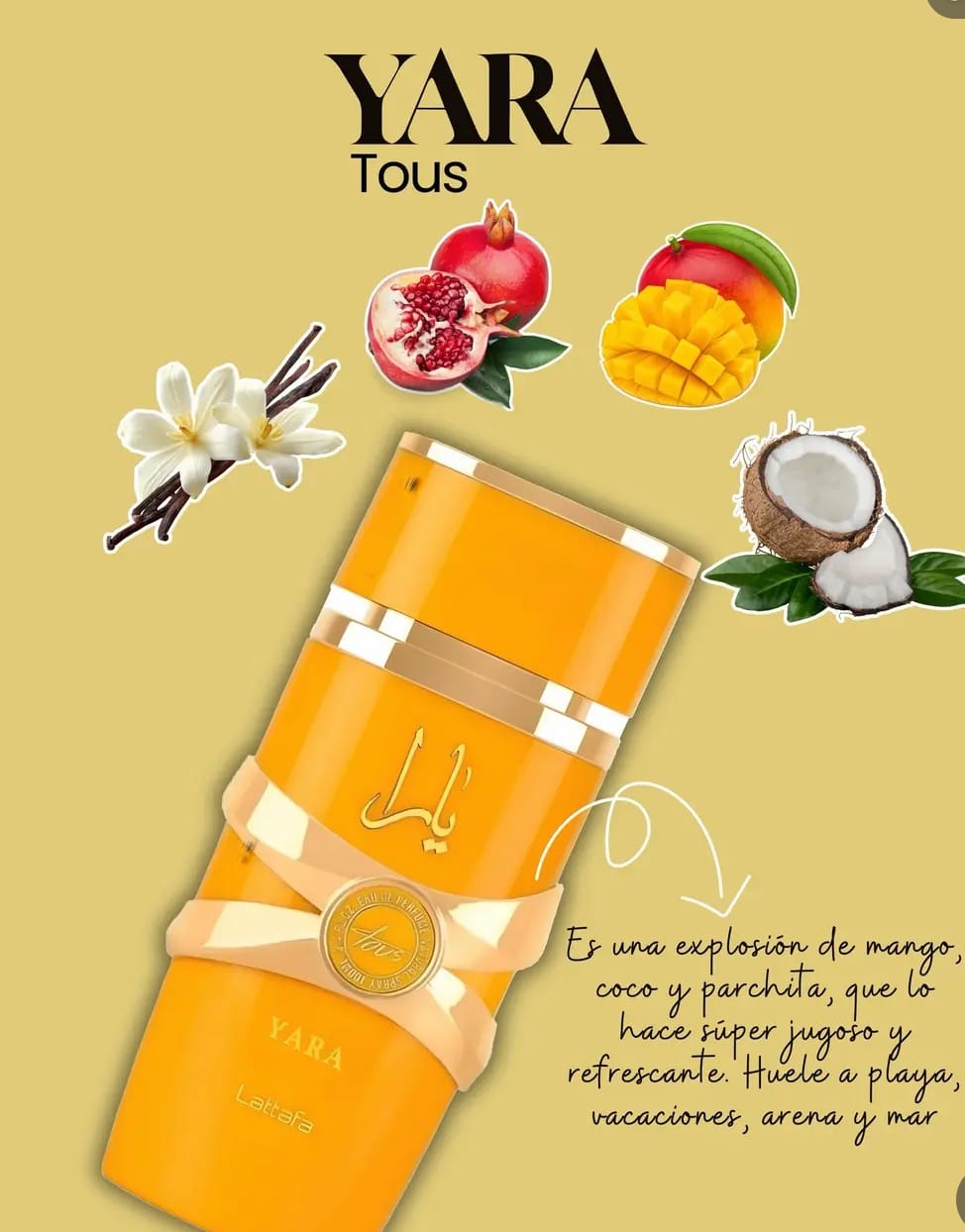 Beneficios del producto: Natural: A diferencia de otros perfumes, YARA TOUS utiliza ingredientes naturales, evitando químicos agresivos que pueden irritar la piel.
