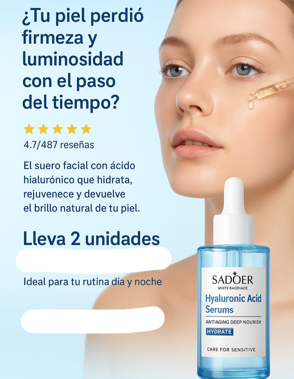 Enriquecido con ácido hialurónico de alta concentración, este sérum proporciona una hidratación intensa y duradera, ayudando a rellenar líneas finas y arrugas desde el interior.